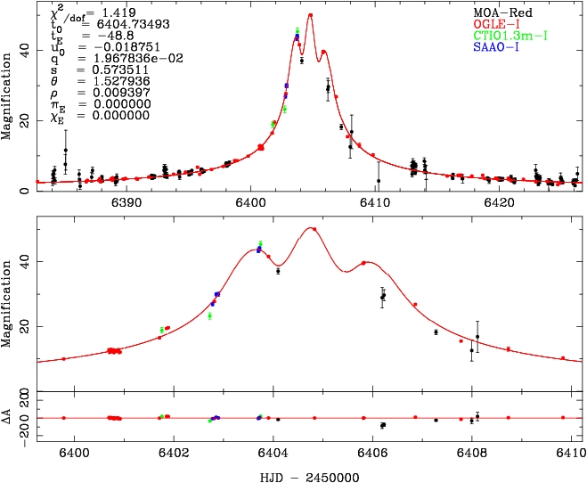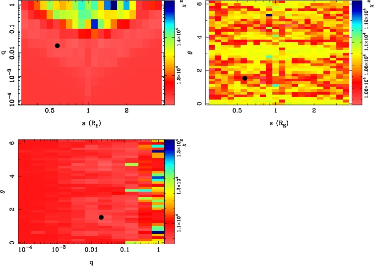 | tE(day) | q | s | α(radian) | ρ | χ² |