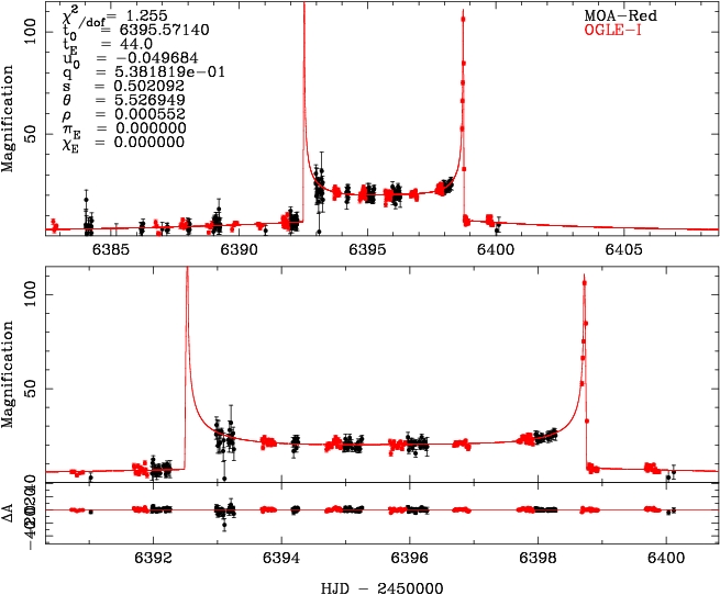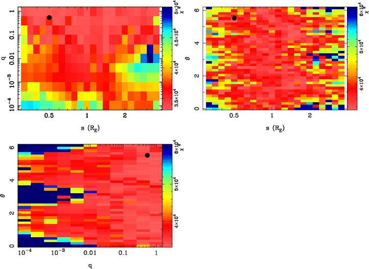 | tE(day) | q | s | α(radian) | ρ | χ² |