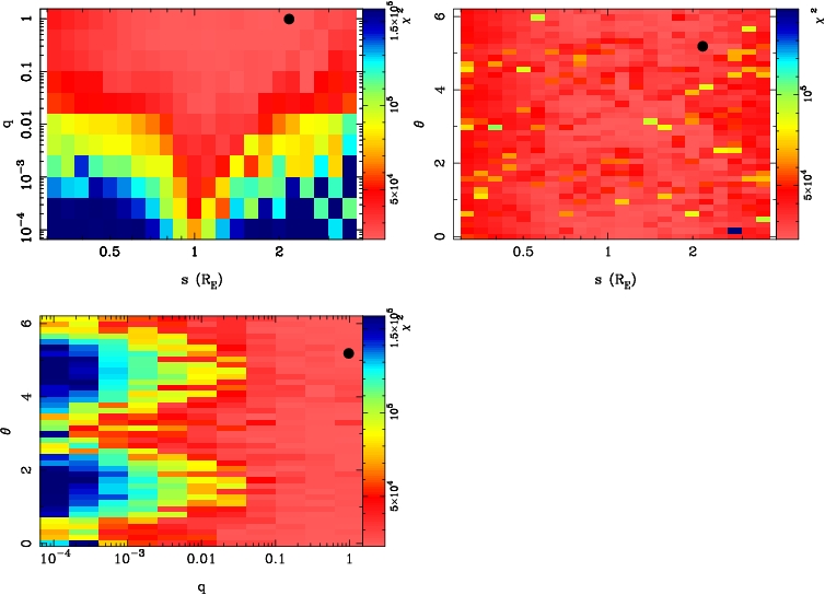 | tE(day) | q | s | α(radian) | ρ | χ² |