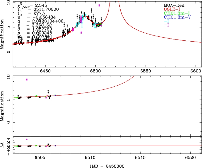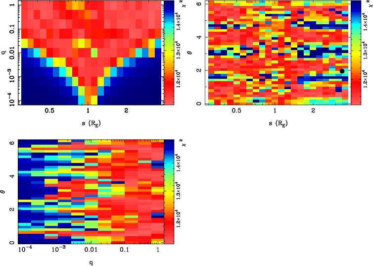 | tE(day) | q | s | α(radian) | ρ | χ² |
