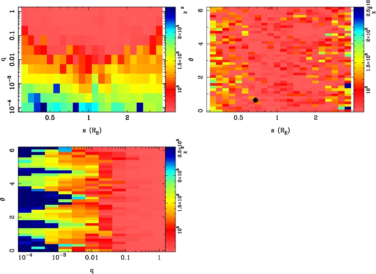 | tE(day) | q | s | α(radian) | ρ | χ² |