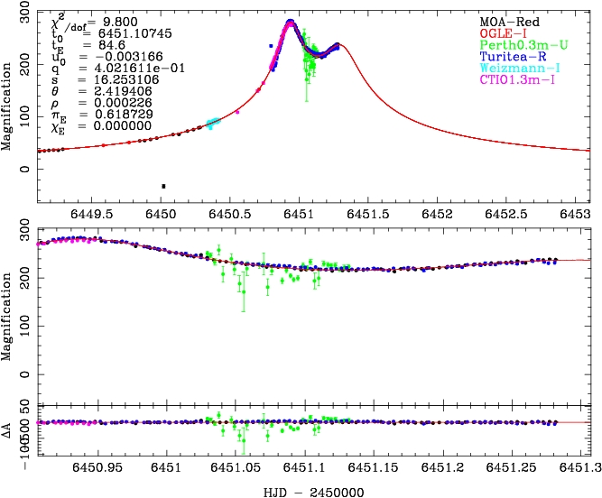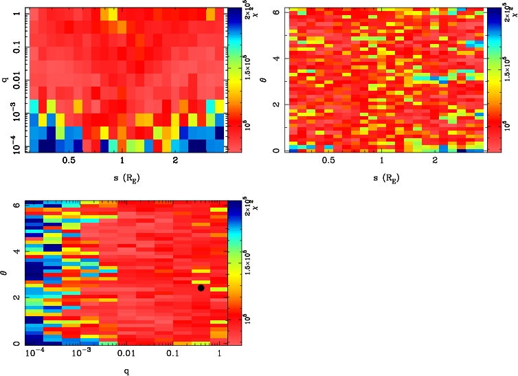| tE(day) | q | s | α(radian) | ρ | χ² |