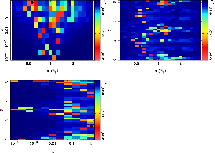 | tE(day) | q | s | α(radian) | ρ | χ² |
