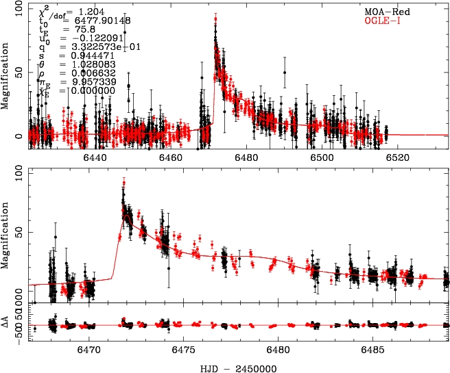| tE(day) | q | s | α(radian) | ρ | χ² |