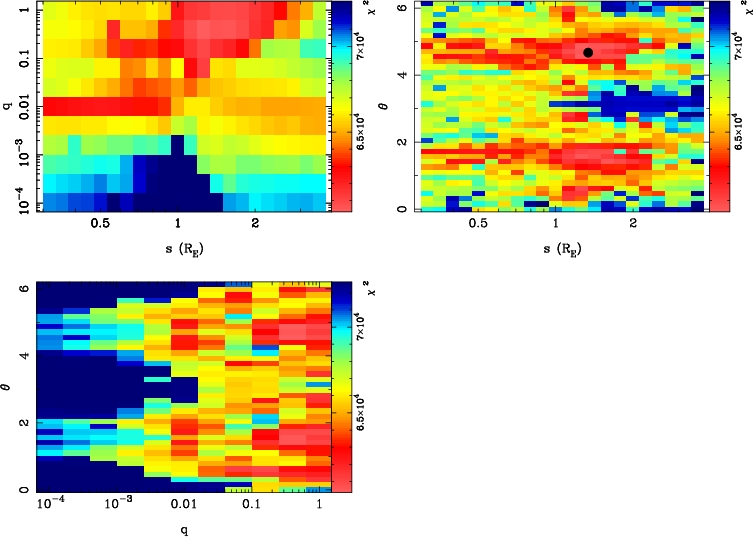 | tE(day) | q | s | α(radian) | ρ | χ² |