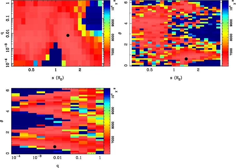 | tE(day) | q | s | α(radian) | ρ | χ² |