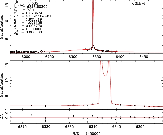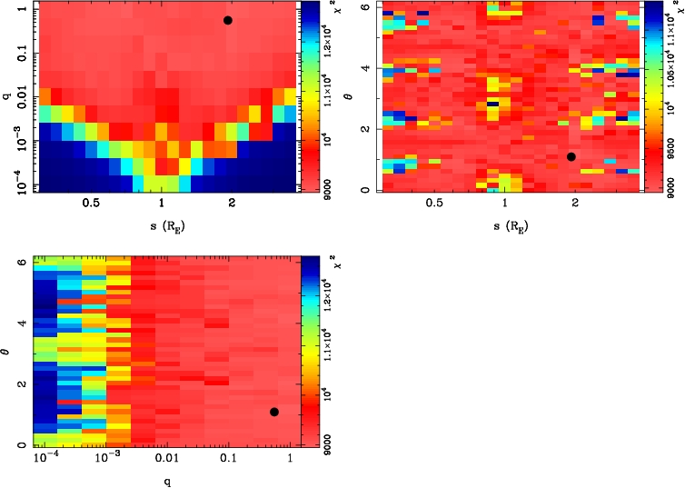 | tE(day) | q | s | α(radian) | ρ | χ² |