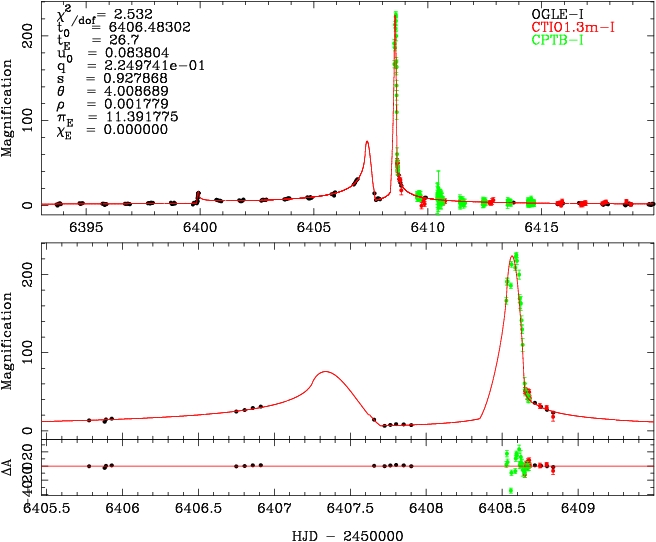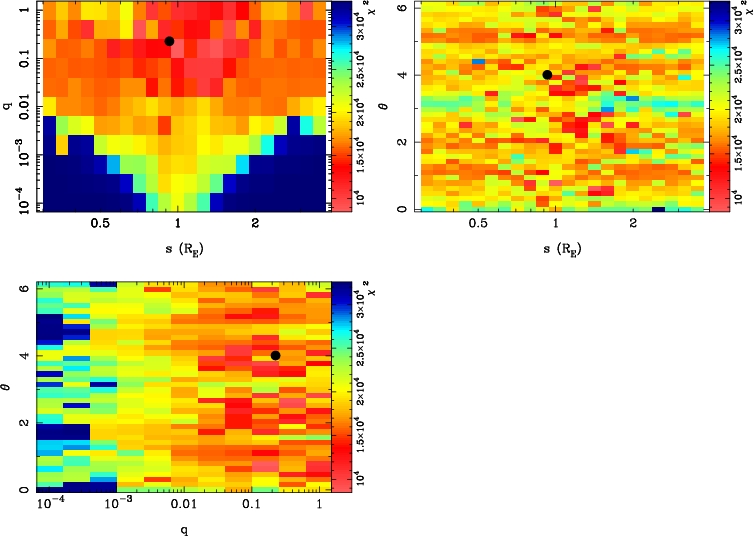 | tE(day) | q | s | α(radian) | ρ | χ² |