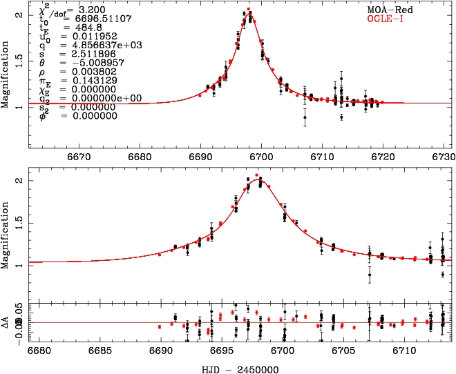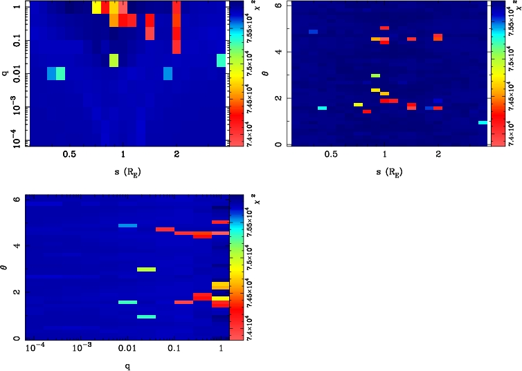 | tE(day) | q | s | α(radian) | ρ | χ² |