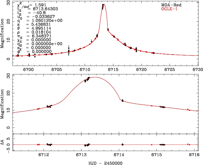 | tE(day) | q | s | α(radian) | ρ | χ² |