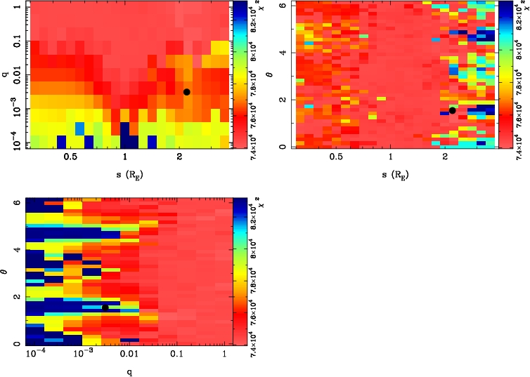 | tE(day) | q | s | α(radian) | ρ | χ² |