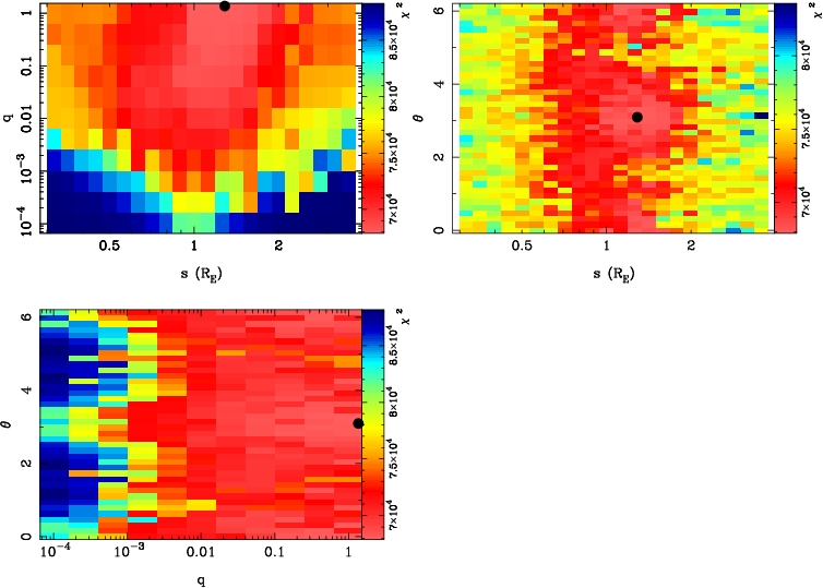 | tE(day) | q | s | α(radian) | ρ | χ² |
