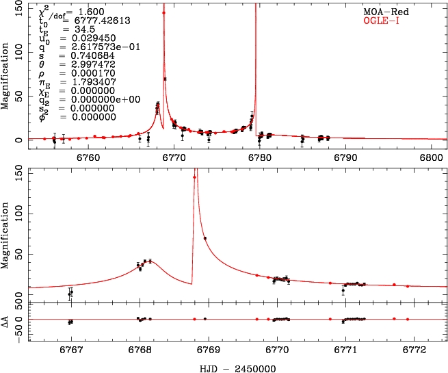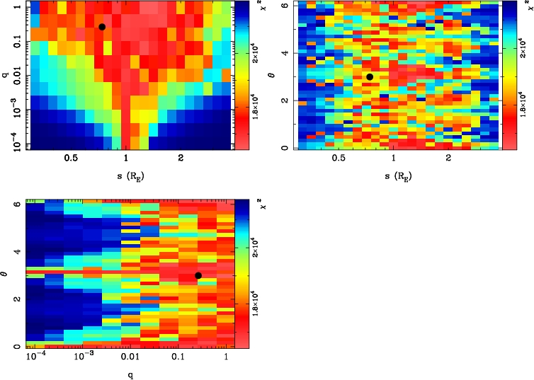 | tE(day) | q | s | α(radian) | ρ | χ² |