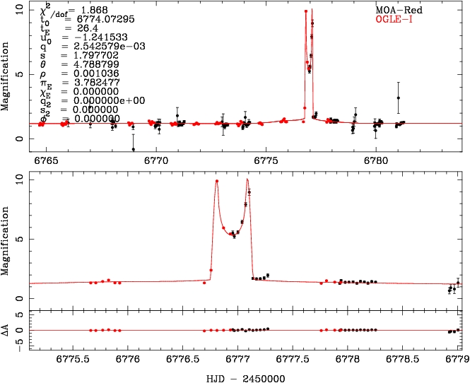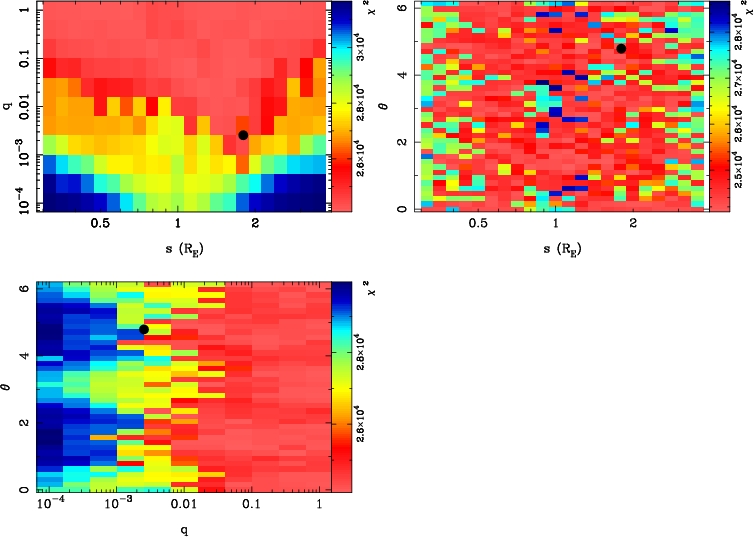 | tE(day) | q | s | α(radian) | ρ | χ² |