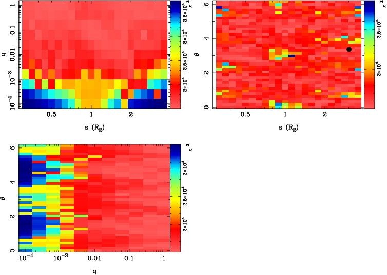 | tE(day) | q | s | α(radian) | ρ | χ² |