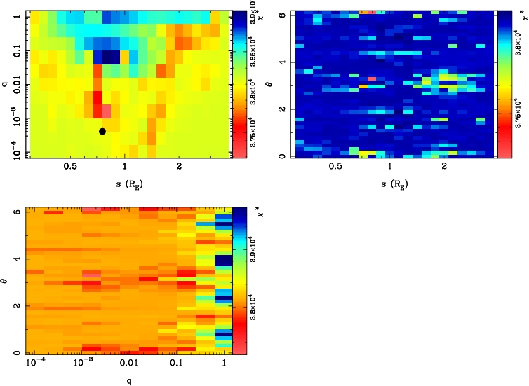 | tE(day) | q | s | α(radian) | ρ | χ² |