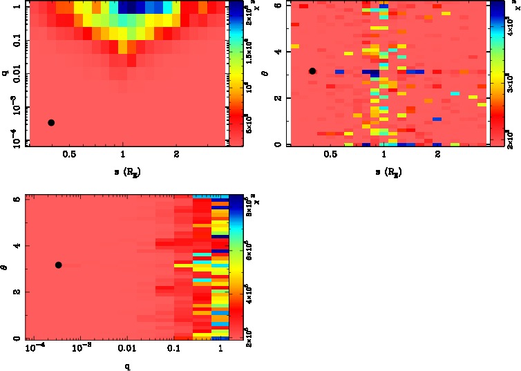 | tE(day) | q | s | α(radian) | ρ | χ² |