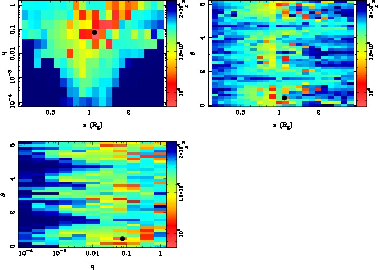 | tE(day) | q | s | α(radian) | ρ | χ² |