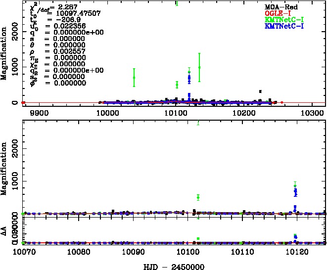 | tE(day) | q | s | α(radian) | ρ | χ² |