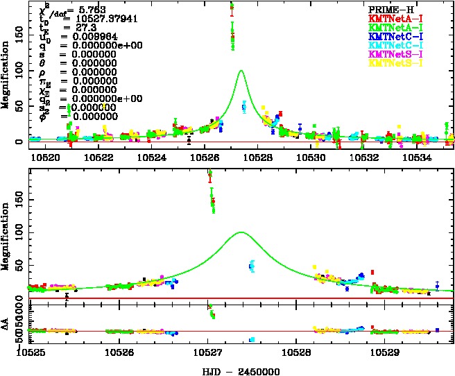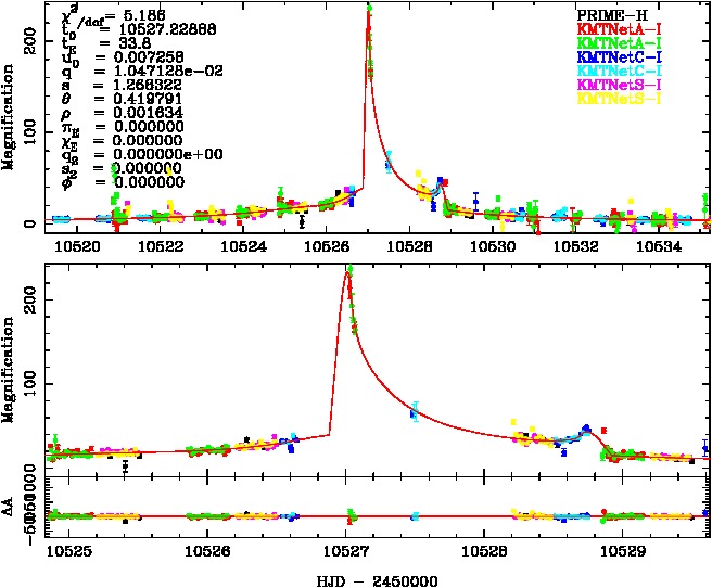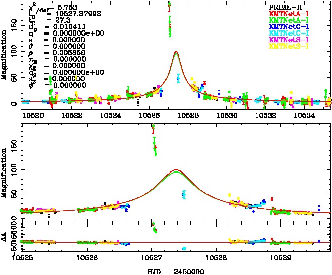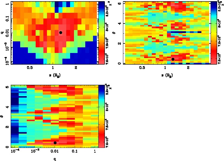 | tE(day) | q | s | α(radian) | ρ | χ² |