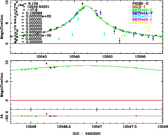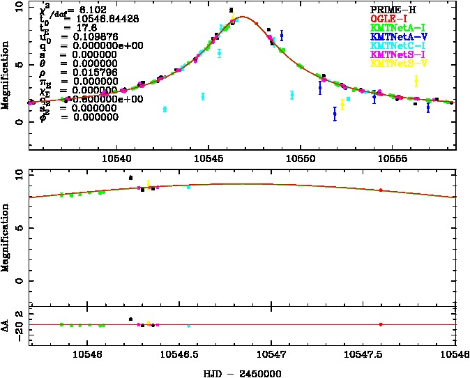 | tE(day) | q | s | α(radian) | ρ | χ² |