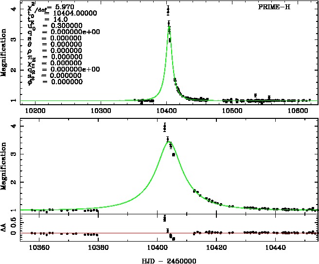 | tE(day) | q | s | α(radian) | ρ | χ² |