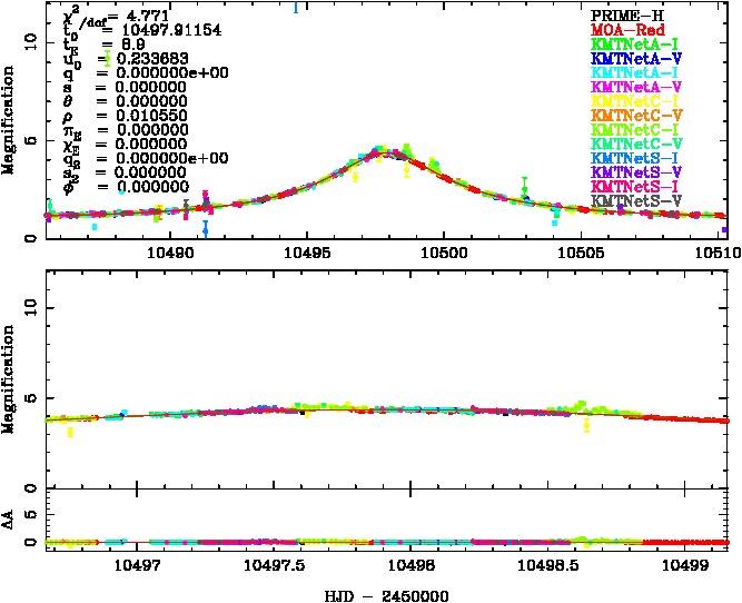 | tE(day) | q | s | α(radian) | ρ | χ² |