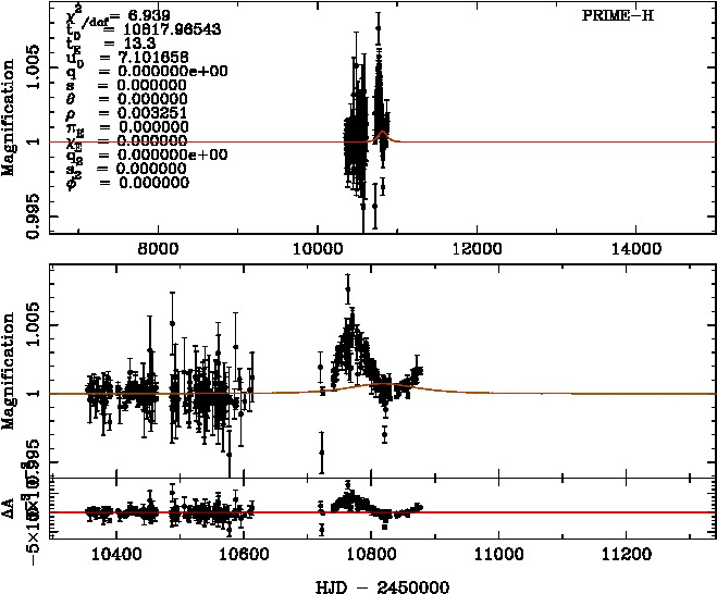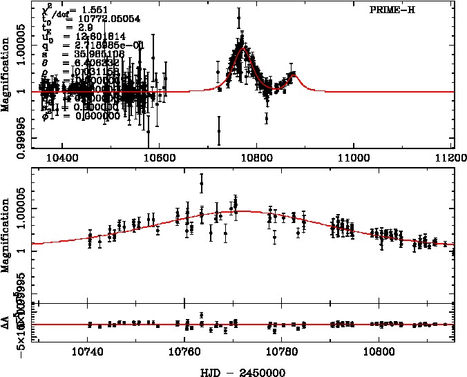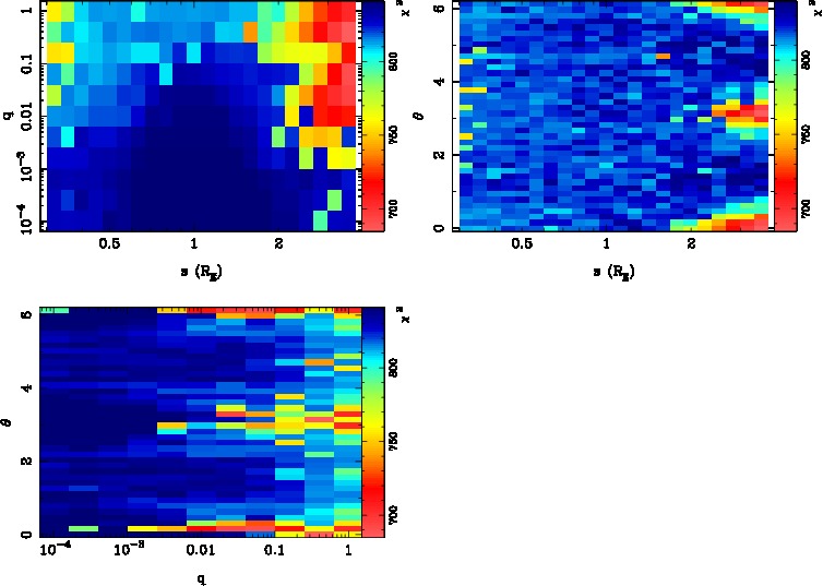 | tE(day) | q | s | α(radian) | ρ | χ² |