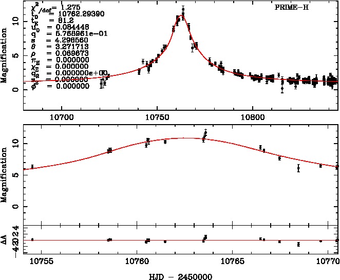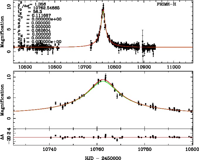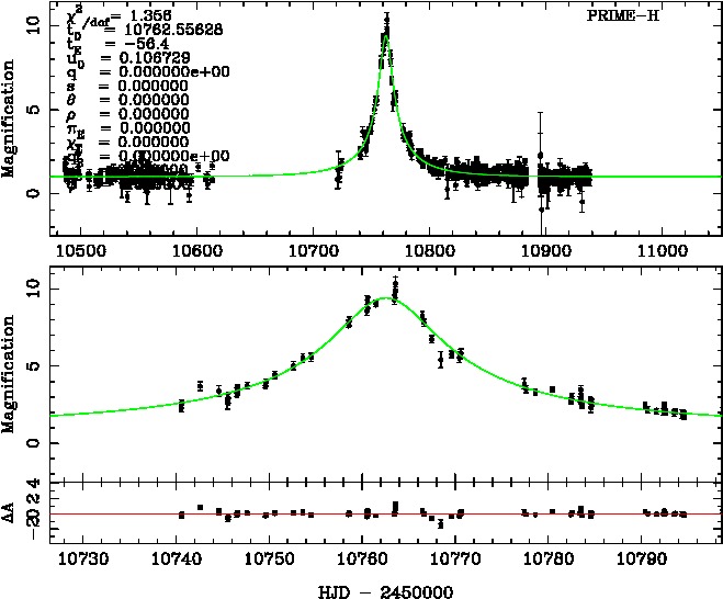 | tE(day) | q | s | α(radian) | ρ | χ² |