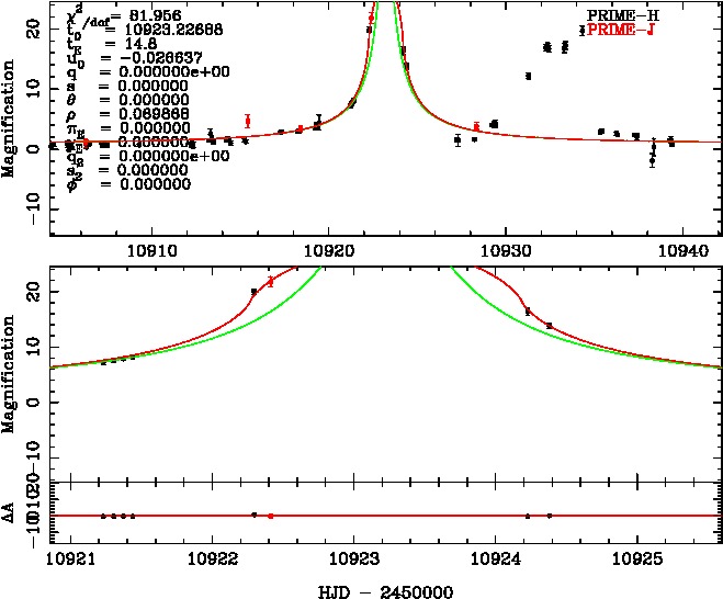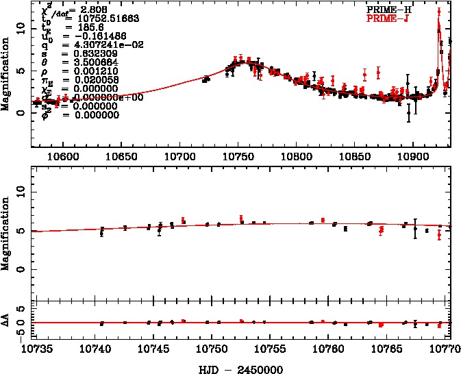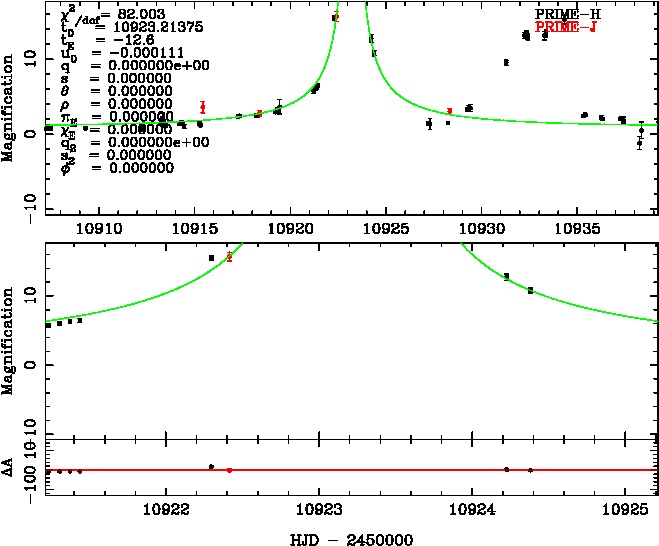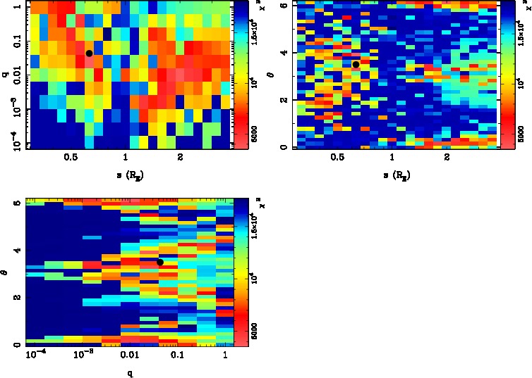 | tE(day) | q | s | α(radian) | ρ | χ² |