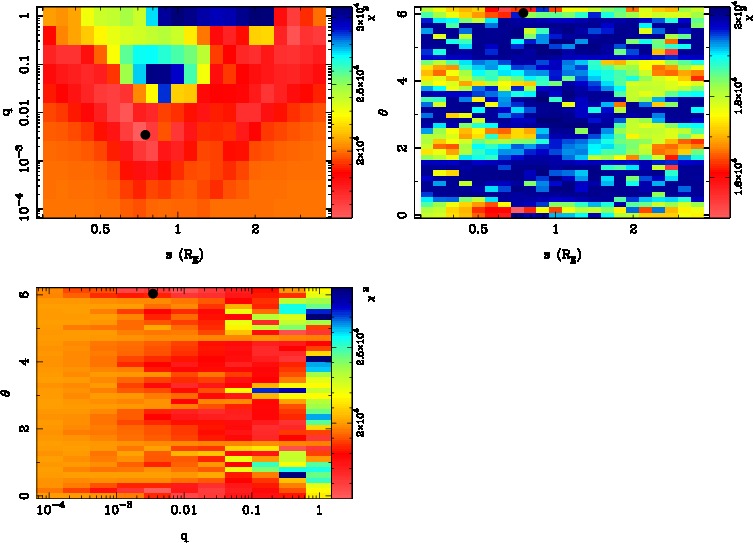 | tE(day) | q | s | α(radian) | ρ | χ² |