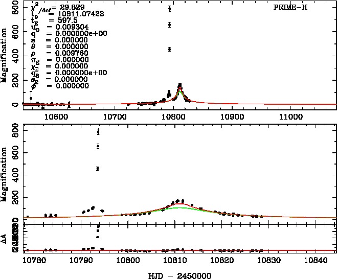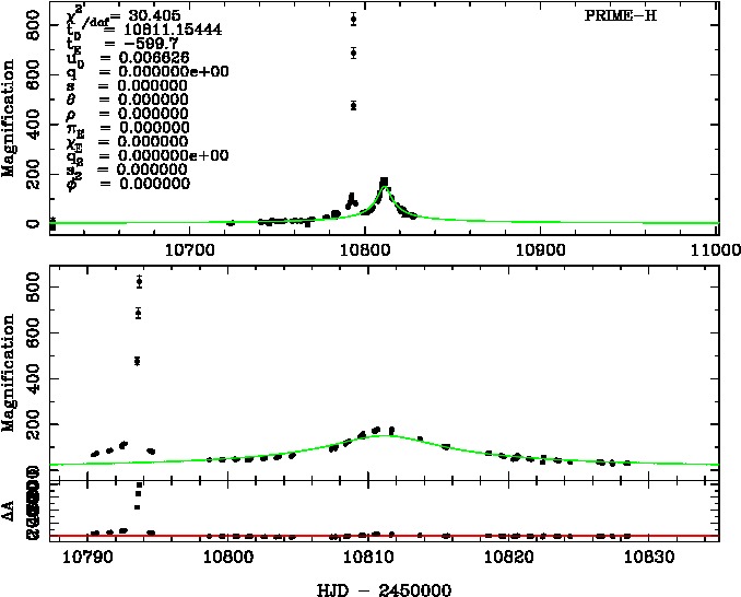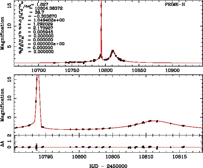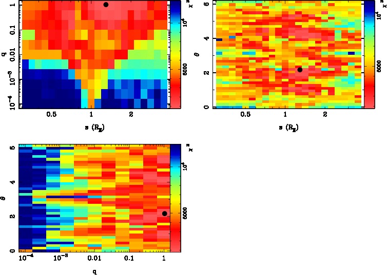 | tE(day) | q | s | α(radian) | ρ | χ² |