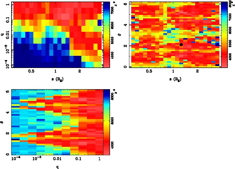 | tE(day) | q | s | α(radian) | ρ | χ² |
