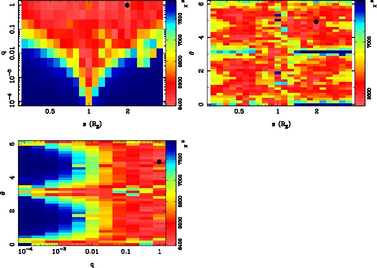 | tE(day) | q | s | α(radian) | ρ | χ² |