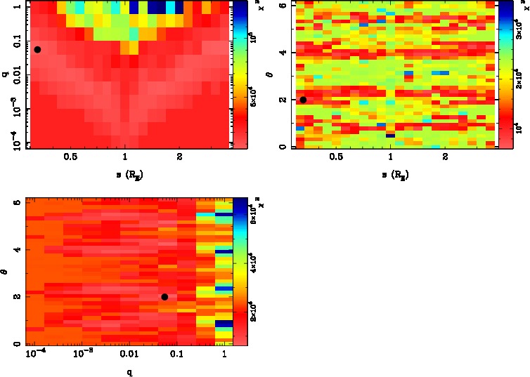 | tE(day) | q | s | α(radian) | ρ | χ² |