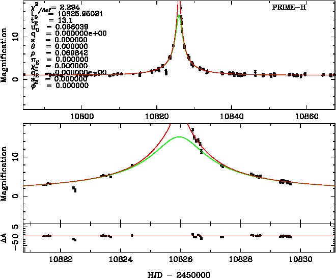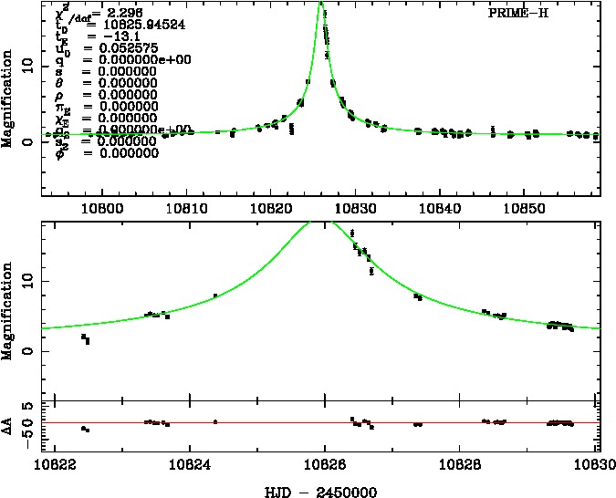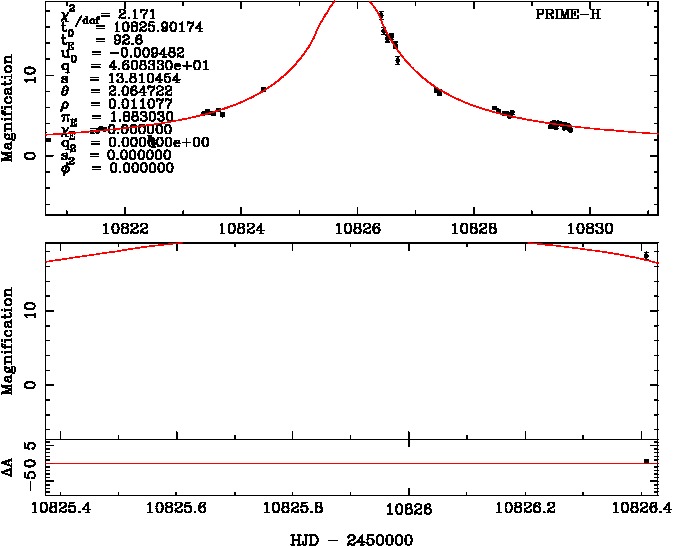 | tE(day) | q | s | α(radian) | ρ | χ² |