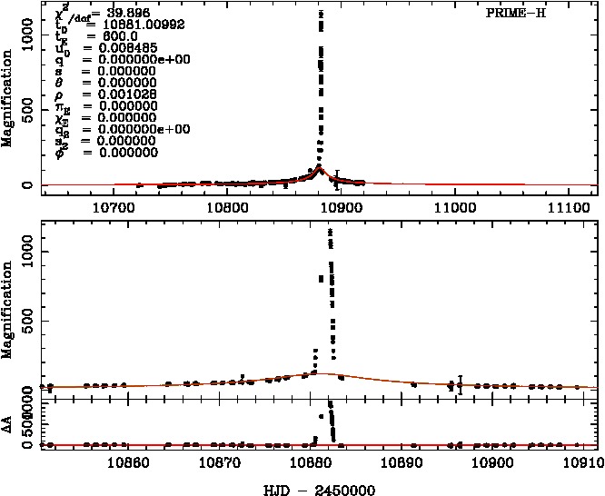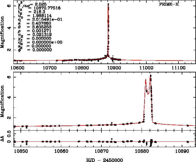 | tE(day) | q | s | α(radian) | ρ | χ² |
