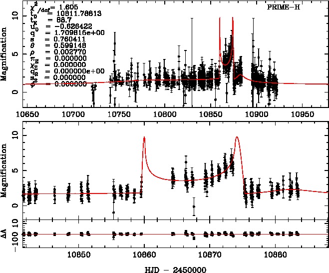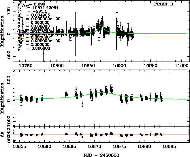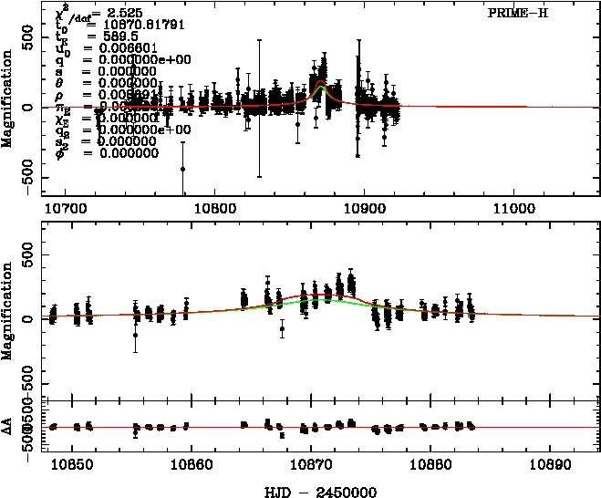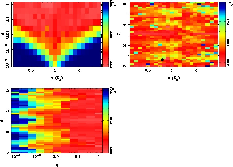 | tE(day) | q | s | α(radian) | ρ | χ² |