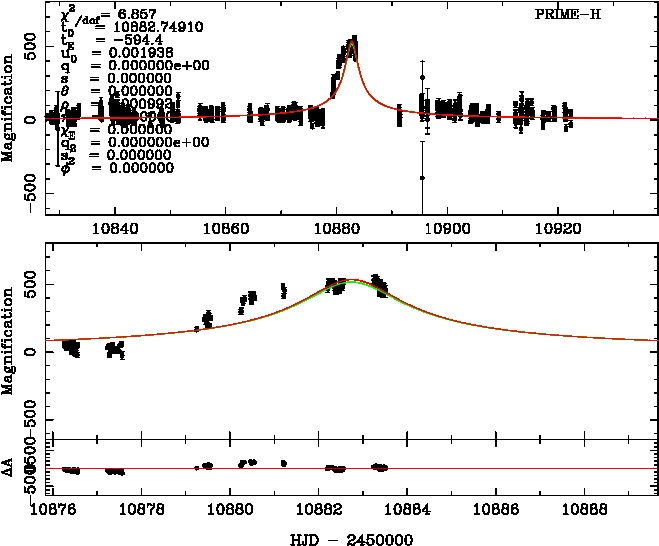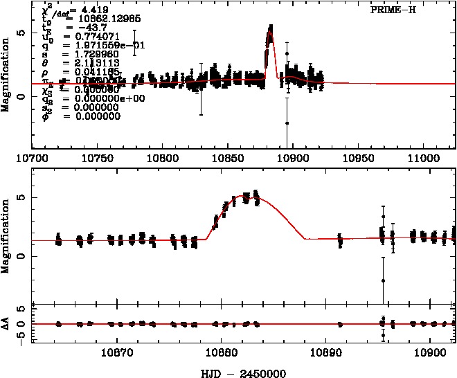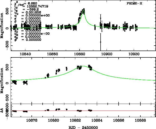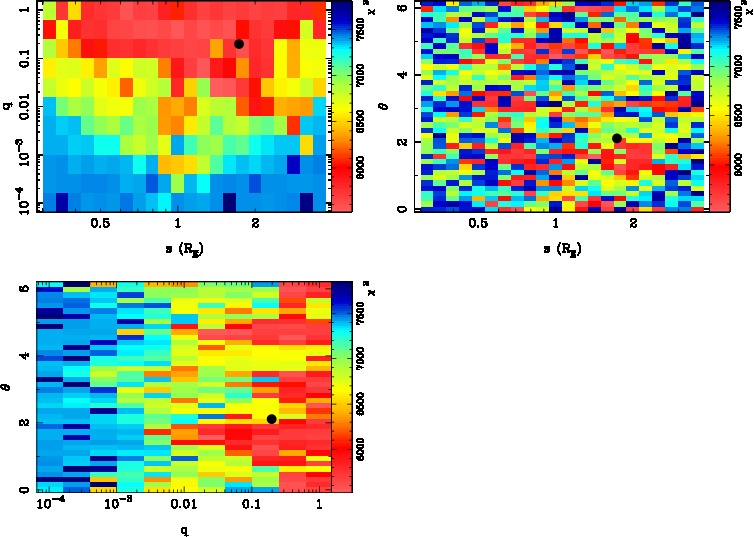 | tE(day) | q | s | α(radian) | ρ | χ² |