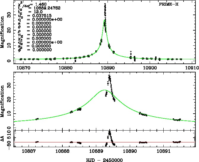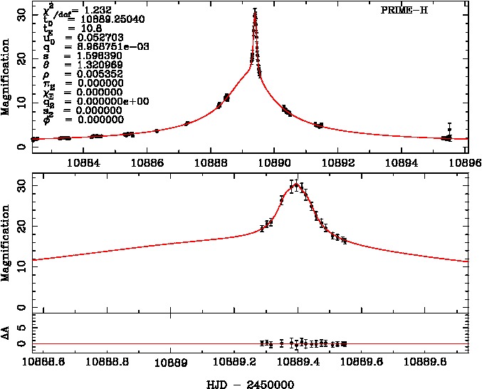 | tE(day) | q | s | α(radian) | ρ | χ² |