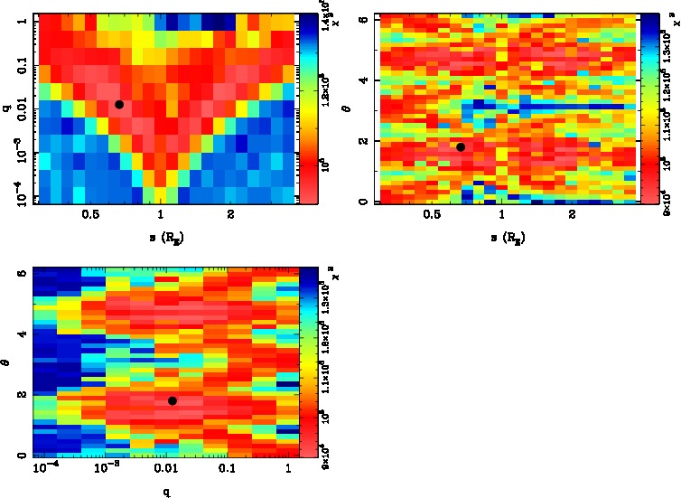 | tE(day) | q | s | α(radian) | ρ | χ² |