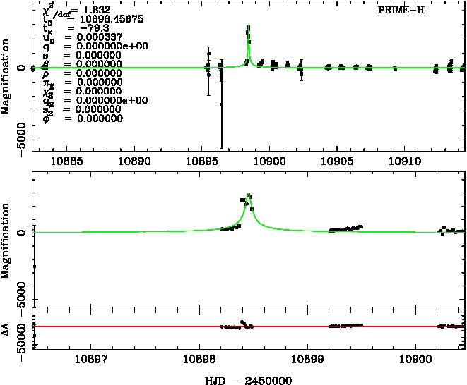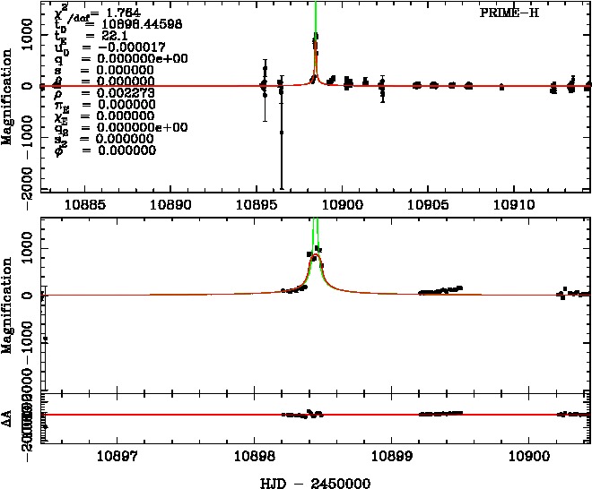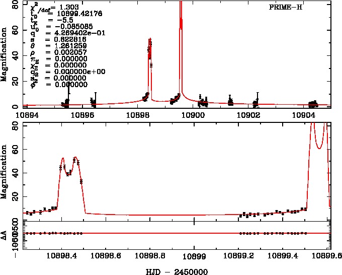 | tE(day) | q | s | α(radian) | ρ | χ² |