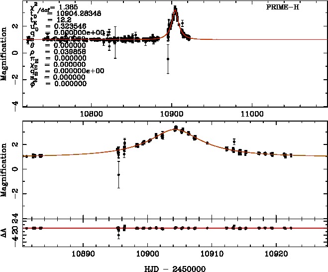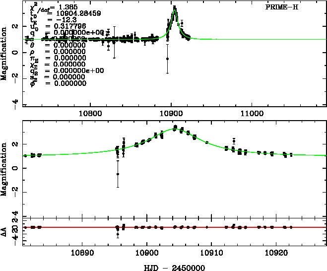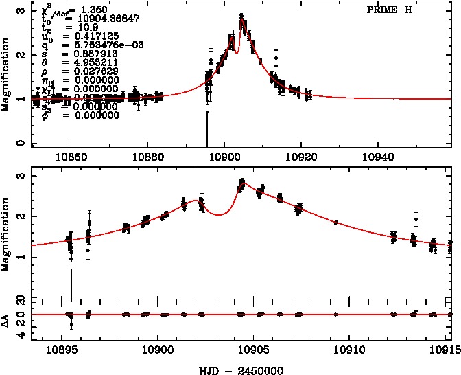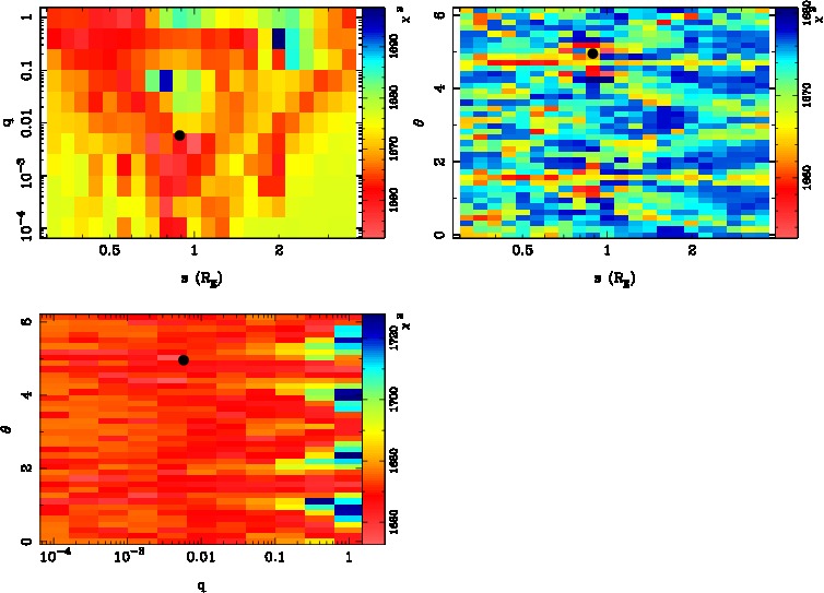 | tE(day) | q | s | α(radian) | ρ | χ² |