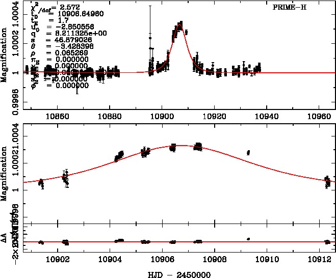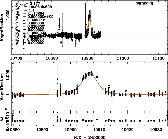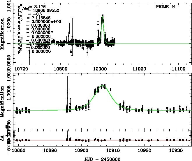 | tE(day) | q | s | α(radian) | ρ | χ² |