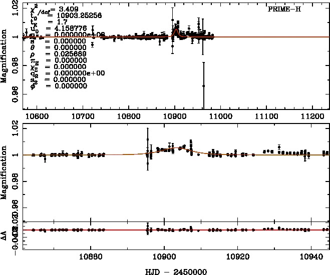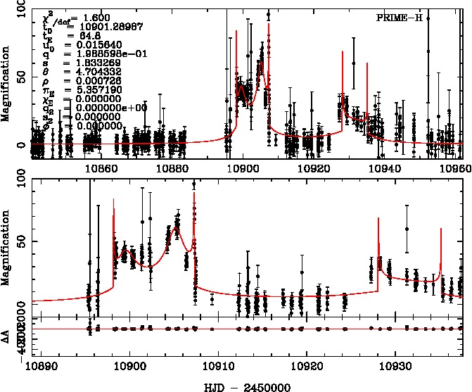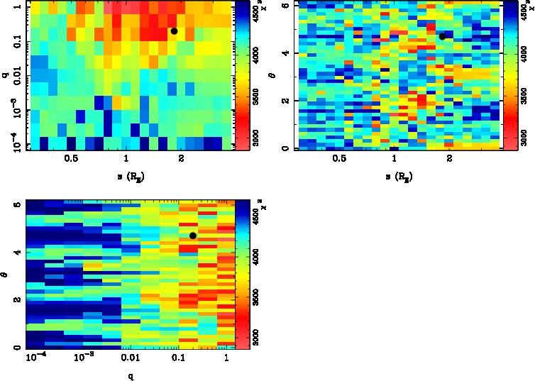 | tE(day) | q | s | α(radian) | ρ | χ² |